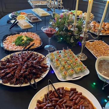 Enjoy a bountiful buffet full of bite-size and mini-sampling options. Fill up with a variety of whimsical morsels themed to the event. These creative dainty bites and savory nibbles are a feast for the eyes as they fill your tummy!